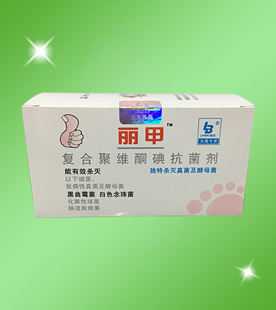 - 本品是以聚维酮碘、食用乙醇和纯化水为主要原料,适量添加甘油护肤保湿剂及天然龙脑(冰片)Dryobalanops aromatica Gaertn. f.、苦参提取液SophoraFlavescenAit、番红花提取液Crocus、紫草根提取液Lithospermum erythrorhizon、黄柏提取液Cortex Phellodendri Chinensis、蛇床子提取液Cnidium monnieri(L.)Cuss 等植物提取物,经混合、搅拌复配而成的蓝宝?丽甲?复合聚维酮碘抗菌剂。